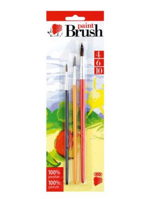 3 kusová sada guľatých školských štetcov s farebnou rúčkou. Štetina 100% poník. Ideálne na maľovanie vodovými a temperovými farbami. Šírka štetiny 4-6-10 mm.