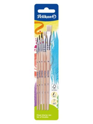 Sada štetcov Starter-Set Pelikan 5ks, v zložení: 3 ks vlasové (čísla 2, 4, 6) + 2 ks štetinové ( čísla 6, 10), rukoväť z FSC dreva. Balenie blister.