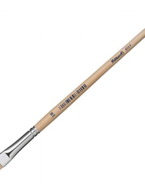 Plochý štetec s krátkymi štetinami. Drevená rukoväť lakovaná bezfarebným lakom a hliníkovým úchytom, s hrúbkou stopy 18 mm. Určený k maľovaniu a kresleniu na papier.