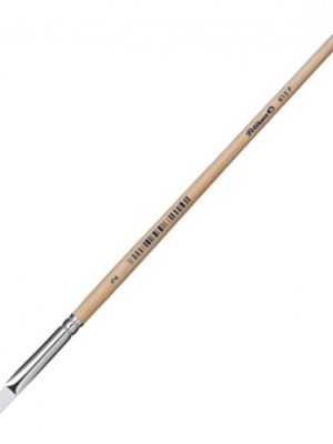 Plochý štetec s krátkymi štetinami. Drevená rukoväť lakovaná bezfarebným lakom a hliníkovým úchytom, s hrúbkou stopy 14 mm. Určený k maľovaniu a kresleniu na papier.