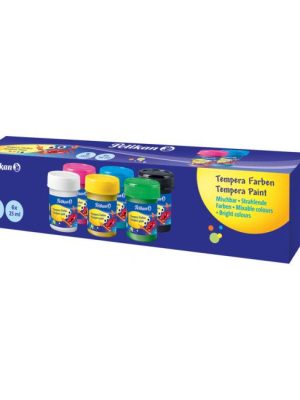 Temperové farby, 6 farieb – biela, žltá, zelená, modrá, ružová, čierna. Balenie v krabičke. Objem 1 kus/25 ml.