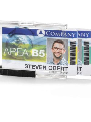 Uzavretá visačka na dve plastové karty zo silného priehľadného nepružného plastu, chrániaca karty z oboch strán. Vkladanie kariet po kratšej strane. Možnosť použitia horizontálne aj vertikálne, kombinovateľná s klipom, ...
