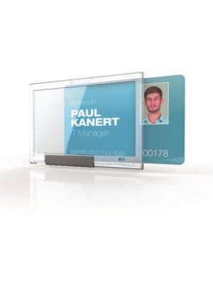 Kombinácia elegancie a bezpečnosti – elegantná, priehľadná akrylová visačka na dve plastové karty, použiteľná horizontálne alebo vertikálne. Dodávaná s chrómovaným výsuvným kotúčom a kovovým klipom na rubovej strane. Rozmery ...
