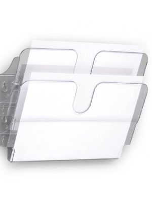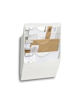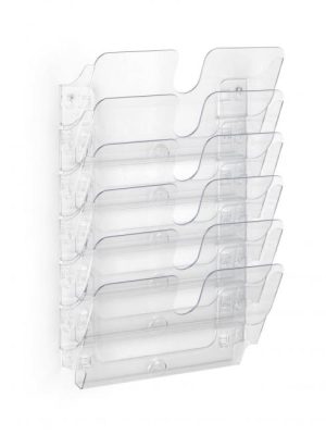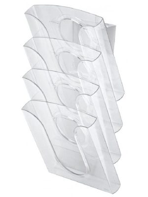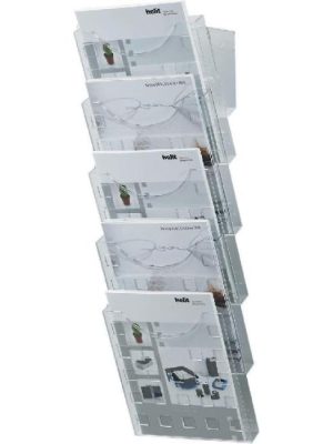 Sada piatich univerzálnych odkladačov formátu A4 a závesného dielu na stenu.Rozmery (š x v x h) 241 x 578 x 150 mmFarba: priehľadná číra