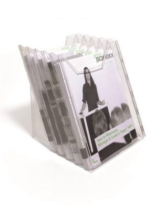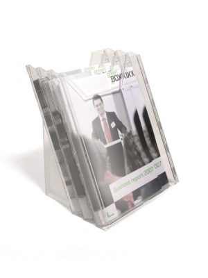 – moderný dizajn– pre dokumenty formátu A4– pozostáva z modulu šiestich držiakov– ideálne pre recepcie, showroomy, salóniky a výstavy– šírka jedného priečinka: 23 mm Farba priehľadná.