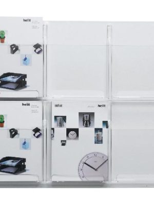 Priehľadný displej na stenu so šiestimi odkladačmi formátu A4. Hĺbka odkladačov 45 mm. Rozmery (š × v × h) 762 × 626 × 51 mm.Rozmery š x v x ...