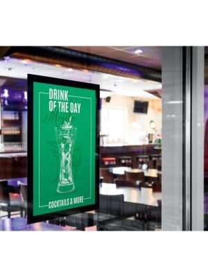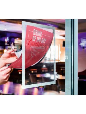 Informačný panel so statickým priľnutím pre použitie na okná, vystavené priamemu slnečnému žiareniu. S ochranou voči UV žiareniu. Odoláva teplotám až do 70 °C. V prípade potreby je ľahko premiestniteľný.