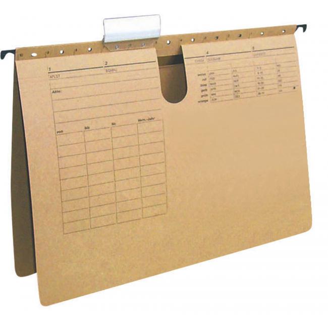 Závesné obaly z recyklovaného papiera gramáže 230 g na dokumenty formátu A4 s rýchloviazačom. Súčasťou obalov je násuvný index z priehľadného plastu s výmenným papierovým štítkom. Farba prírodná hnedá. Väčšie balenie 25 ks.